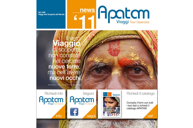 Apatam Viaggi è un Tour Operator che propone itinerari non consueti e mete fuori dalle direttrici del turismo di massa. Il suo pubblico esigente si lascia volentieri affascinare dalle tante nuovo proposte che vengono promosse anche attraverso una puntuale attività di newslettering.