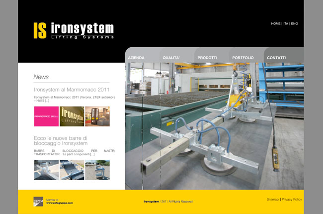 Sviluppo del nuovo sito dell’azienda Ironsystem del Gruppo Epta. Specializzata nella progettazione, costruzione e commercializzazione di sistemi di sollevamento ed accessori sotto gancio, Ironsystem srl ha come obiettivo principale la realizzazione di apparecchiature affidabili e funzionali al servizio del cliente.