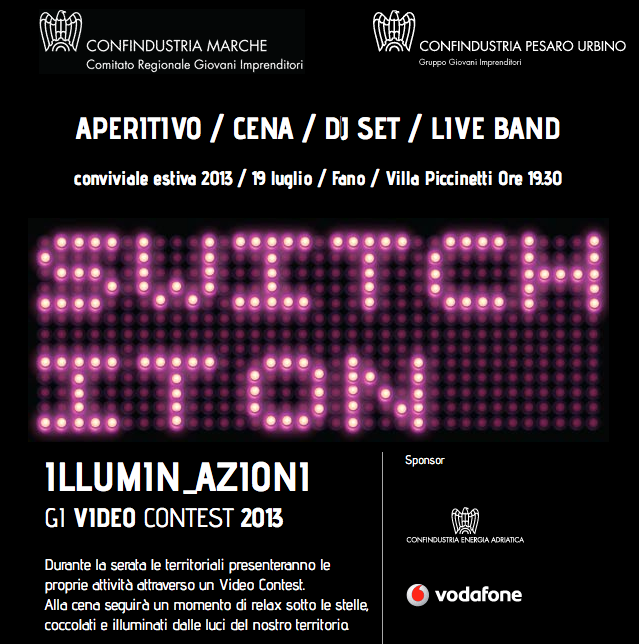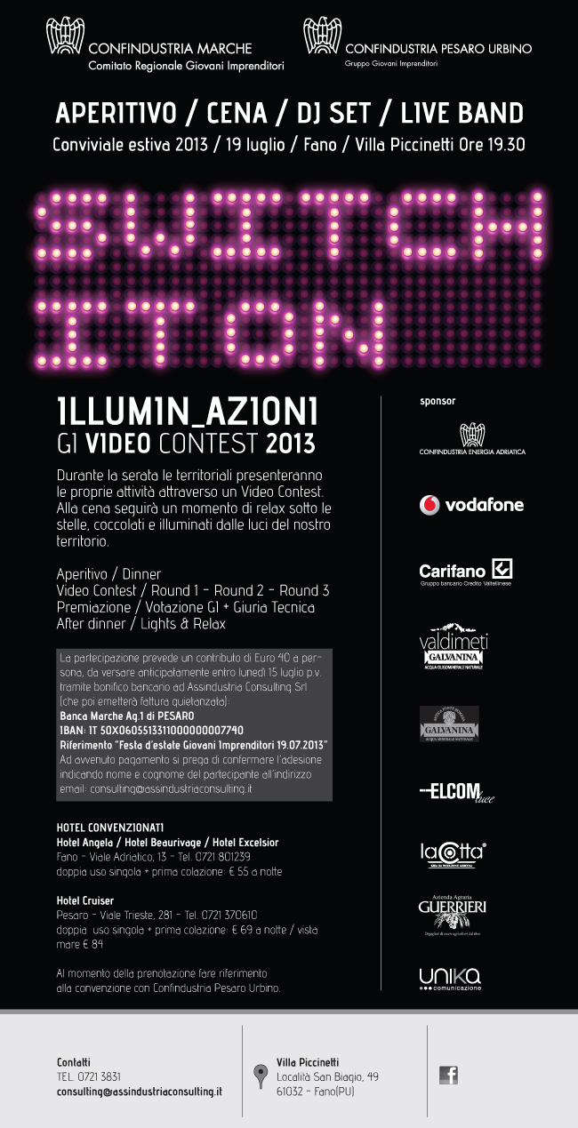 Progettazione grafica e realizzazione di newsletter multimediale per invito alla festa estiva 2013 del Gruppo Giovani imprenditori di Confindustria Marche